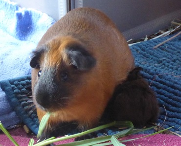 California nennt man einen Farbschlag, bei dem die Tiere Abzeichen in schwarz oder schoko haben. Diese Abzeichen befinden sich um die Nase herum, an den Ohren, Füßen und den Geschlechtsteilen. Ich mag die Kombination der beiden Färbungen. Ich finde, sie sehen aus wie kleine Koalas.